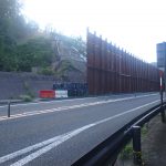 道路土工、法面工施工箇所については、6,5,4段目法面部の法面工が完了しました。3段目以降下段法面部の地滑り解析・設計見直しのため、工事一時中止期間となっており工事再開予定として6月中旬頃から本工事の施工再開予定です。
