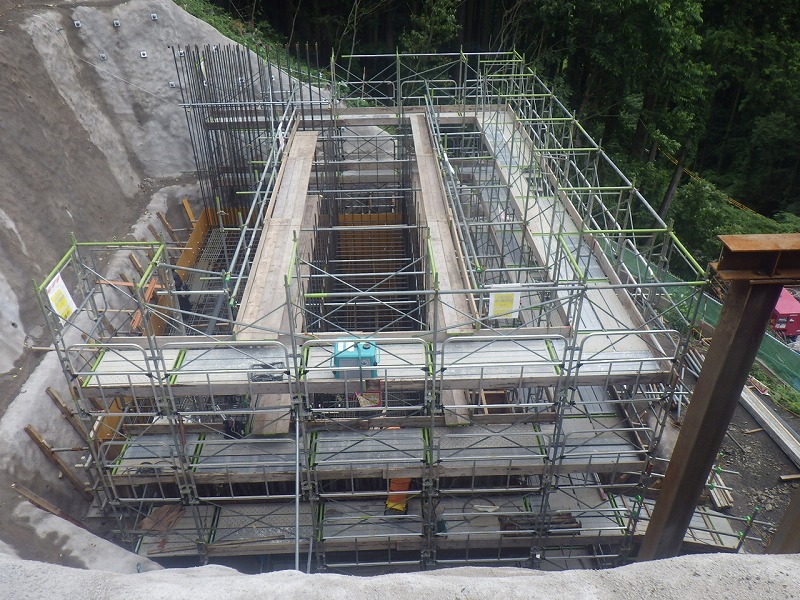 出来高:40.6% トンネル掘削:376m インバートコンクリート:234m 防水工(FILM):90m 7月は引き続いてトンネル掘削ならびに防水シート施工を行います。